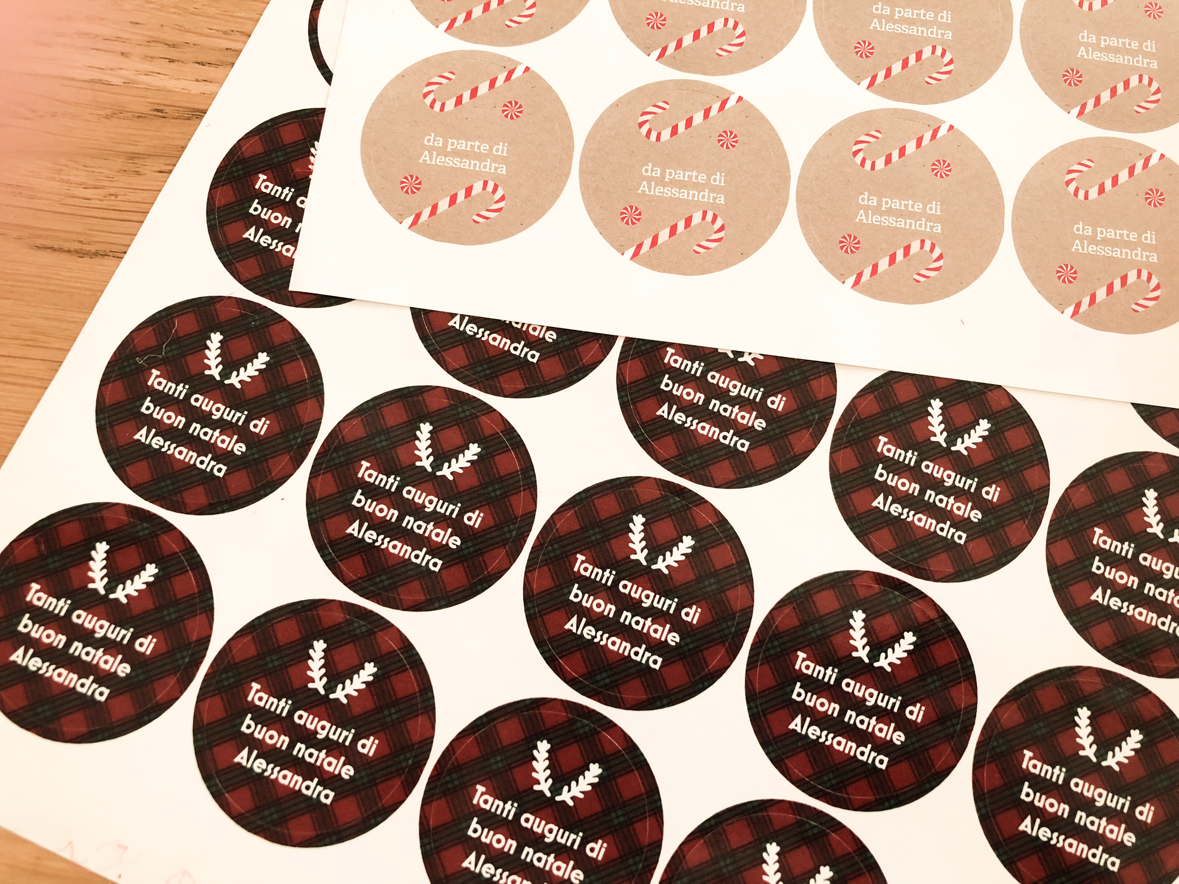Ho fatto stampare anche questi bollini adesivi, in tartan e in color havana, questi li trovo carinissimi da applicare sui pacchetti. Mi sono attenuta a questi colori, ma il sito offre una varietà di modelli davvero originali e carini.