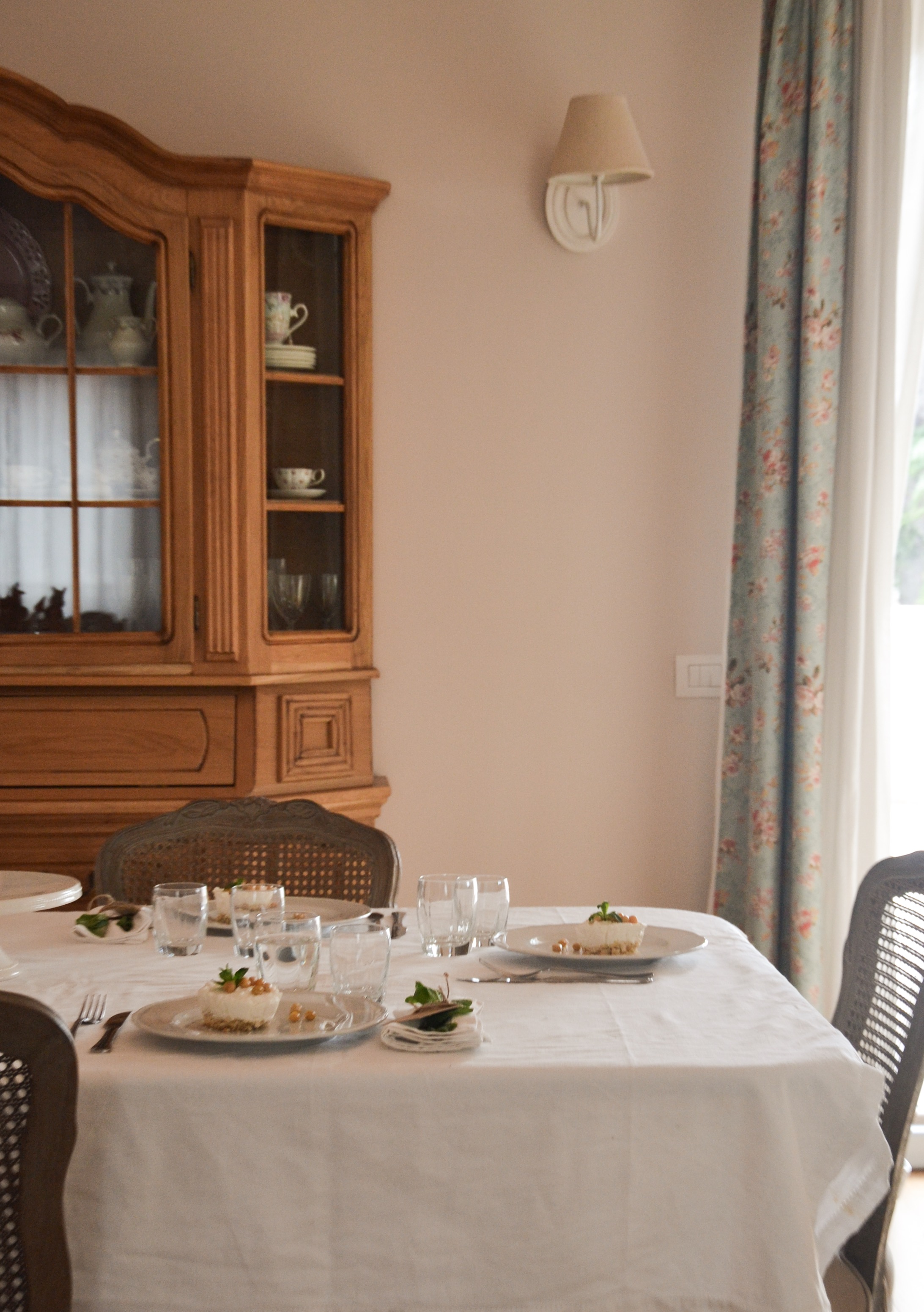 Ho realizzato per ogni ospite un segnaposto molto semplice con materiali facilmente reperibili in casa. Ho utilizzato la stessa menta delle cheese cake per decorare il tovagliolo, ed un tag personalizzato per ogni invitato.