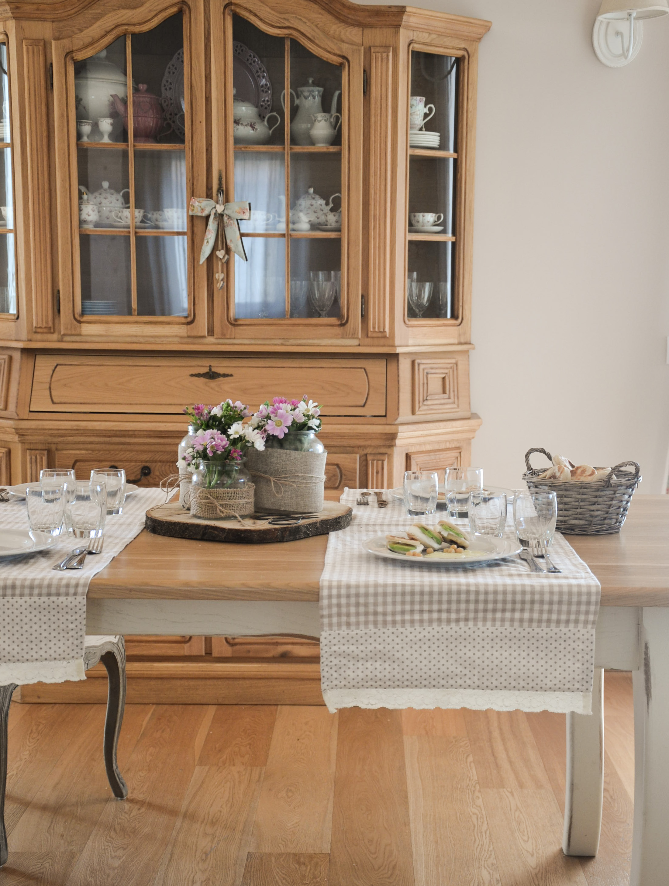 La stessa “freschezza” della ricetta ho voluto riportarla in tavola. Ho apparecchiato la tavola in stile country con dei runner a quadretti, cestini in paglia, ed un centrotavola in iuta e legno con dei fiori freschi i quali davano un tocco di colore e profumo a tutta la tavola.