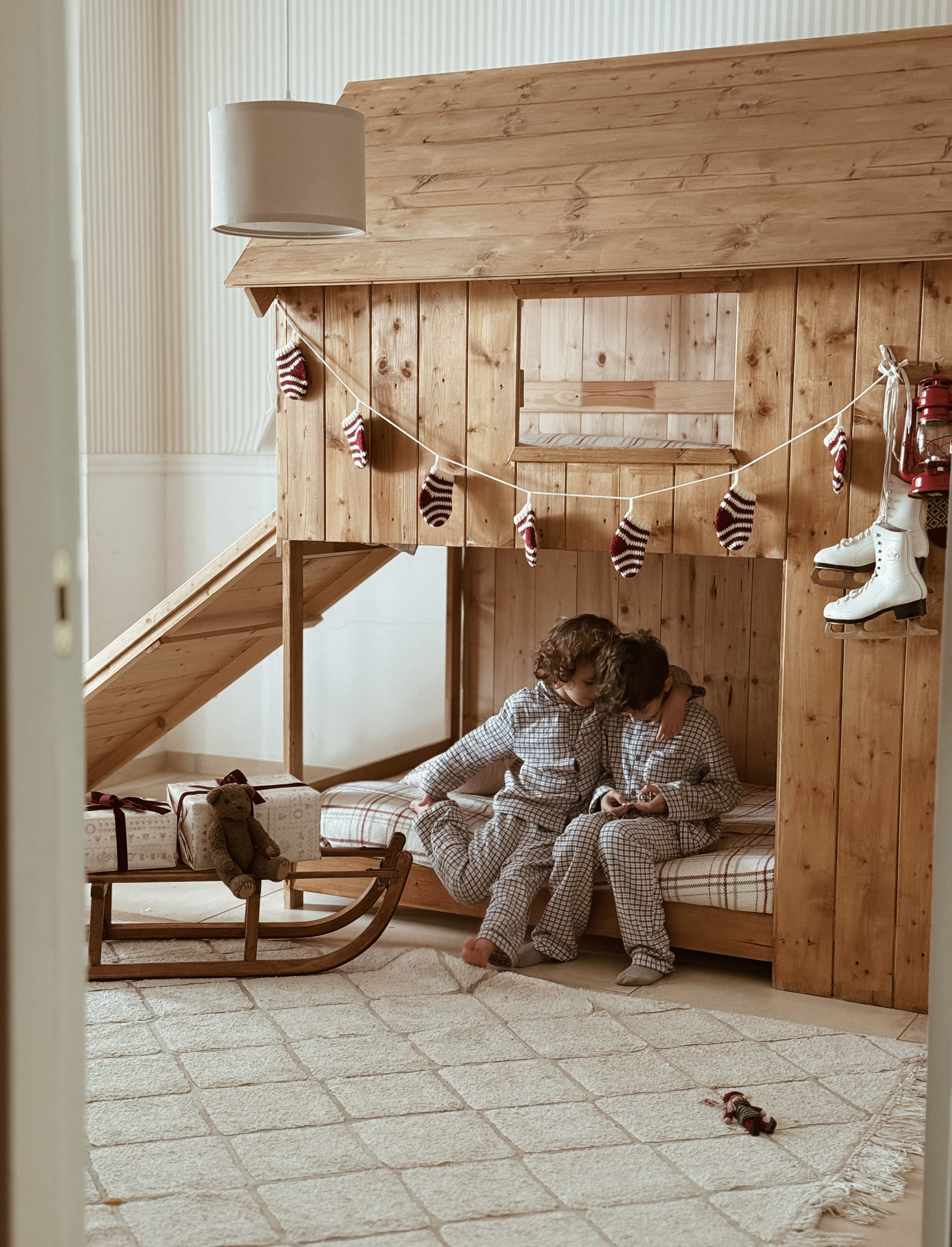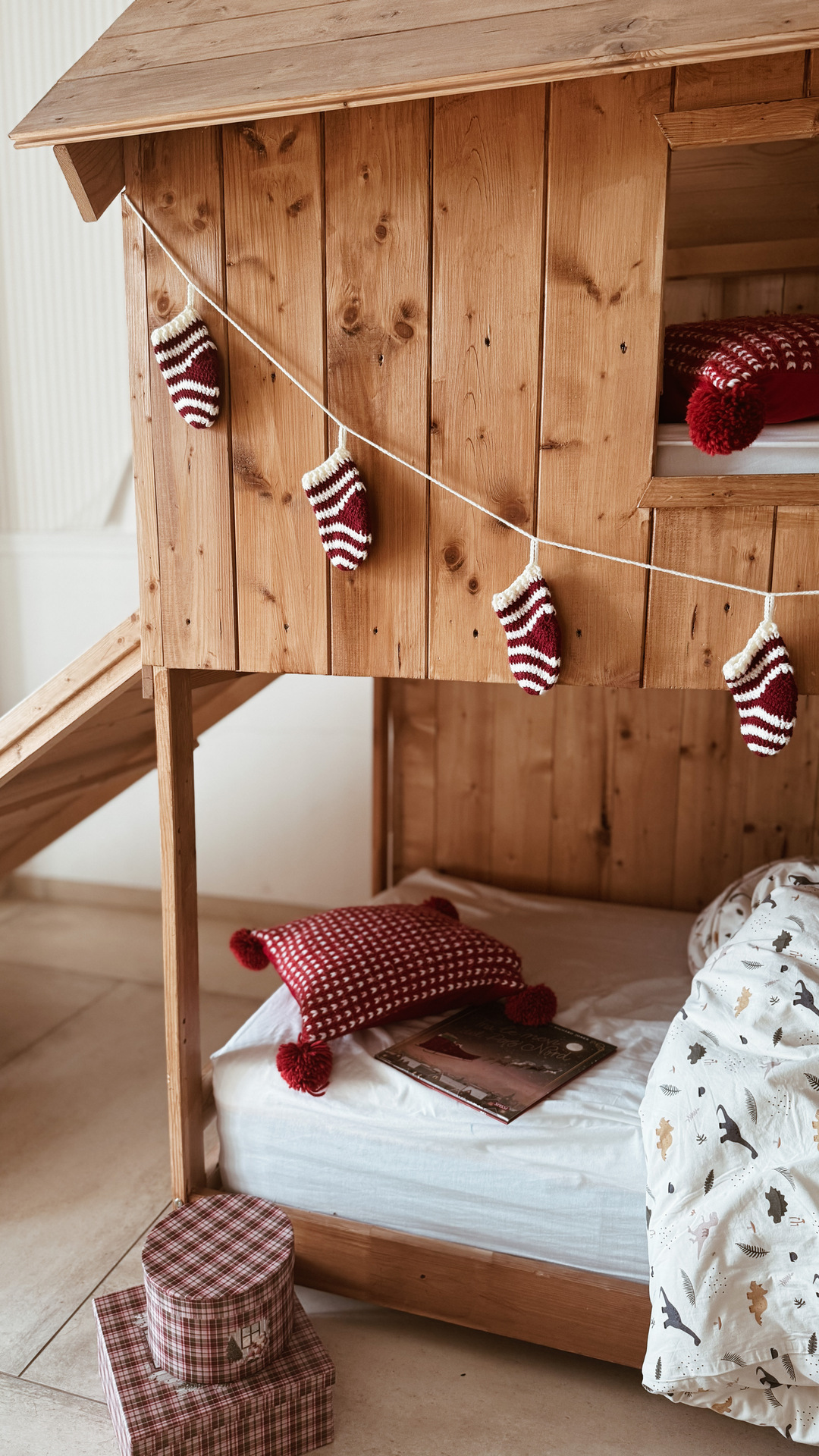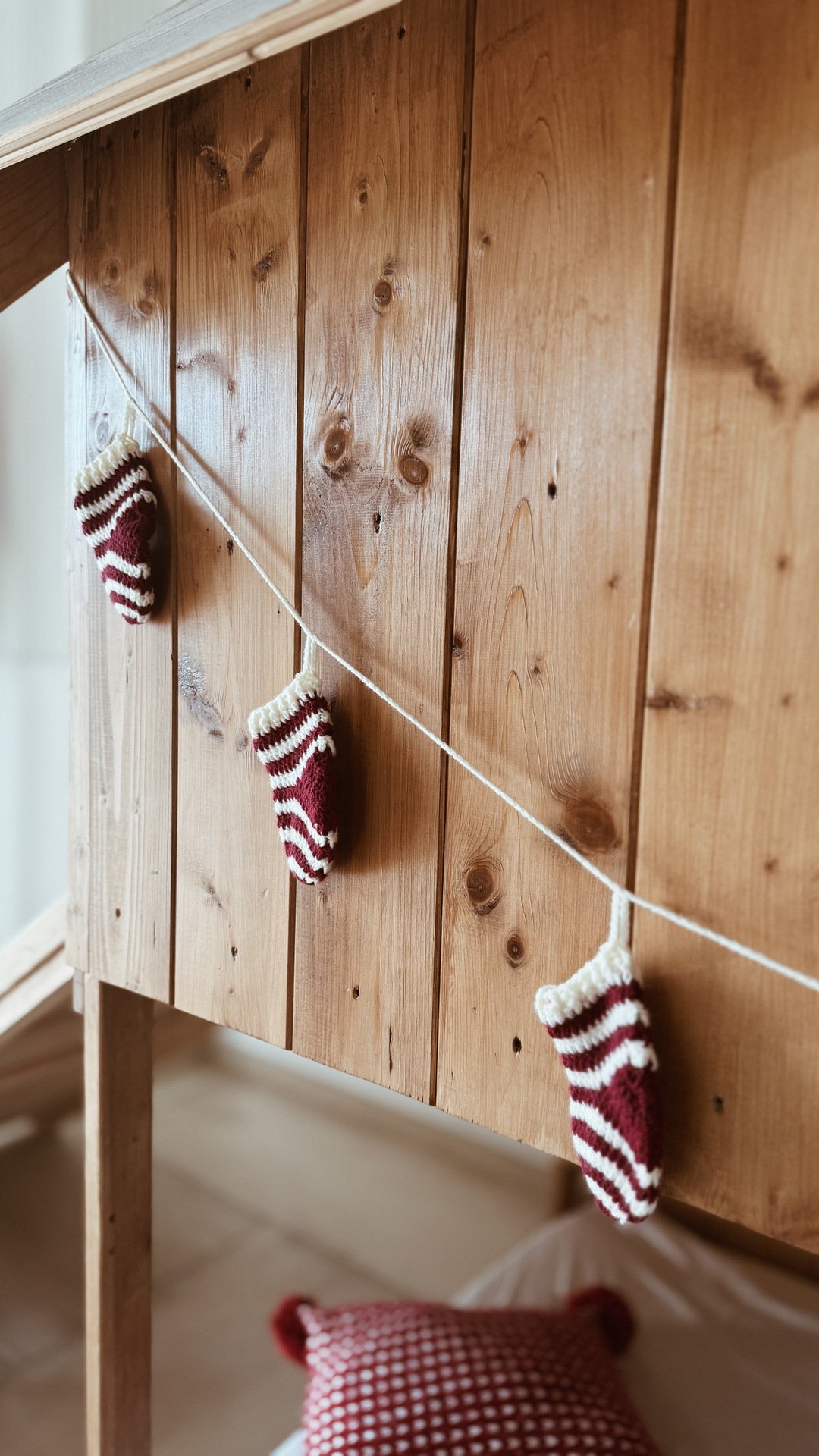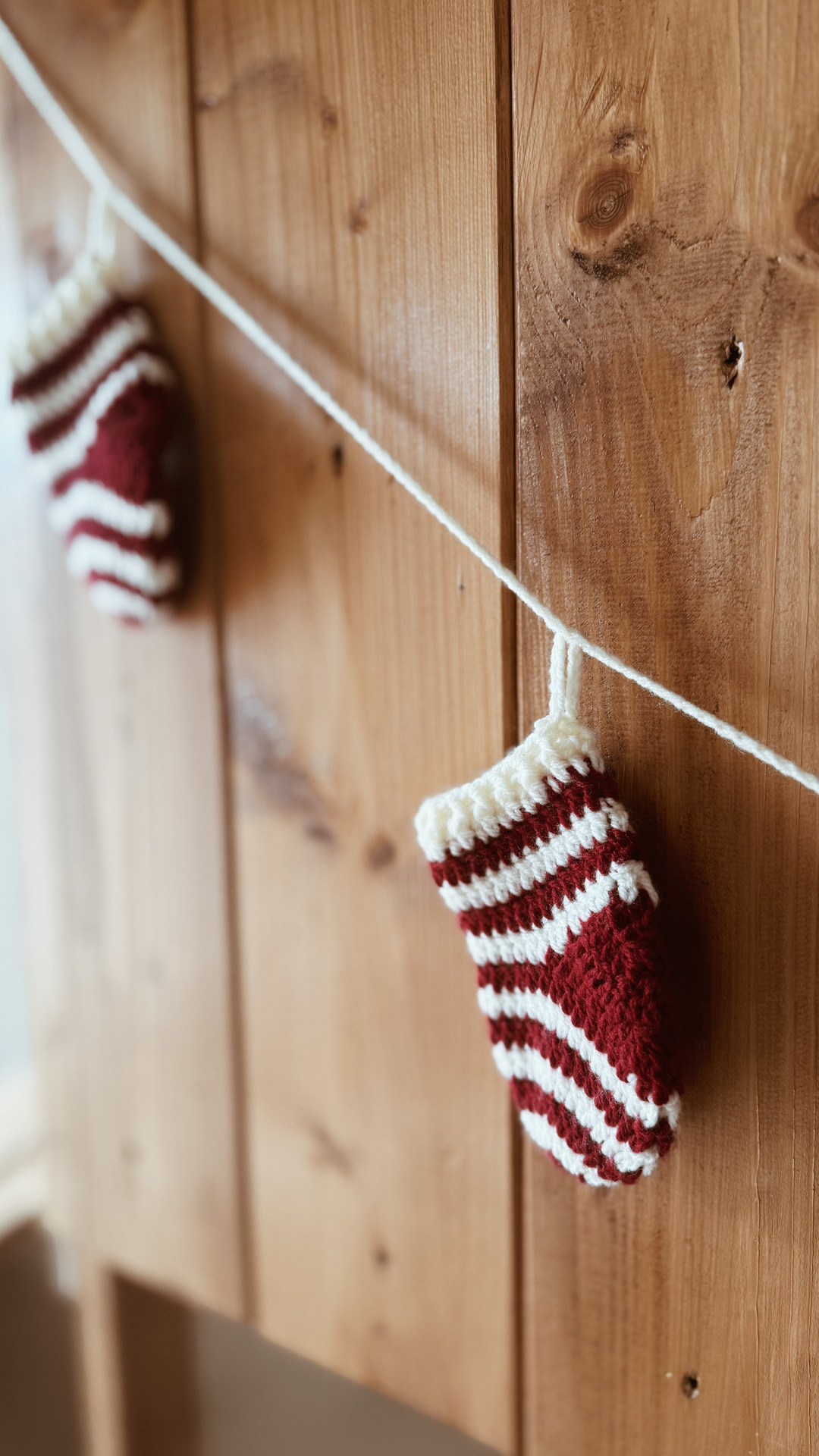 banner di 7 calze realizzate a mano con la tecnica dell’uncinetto